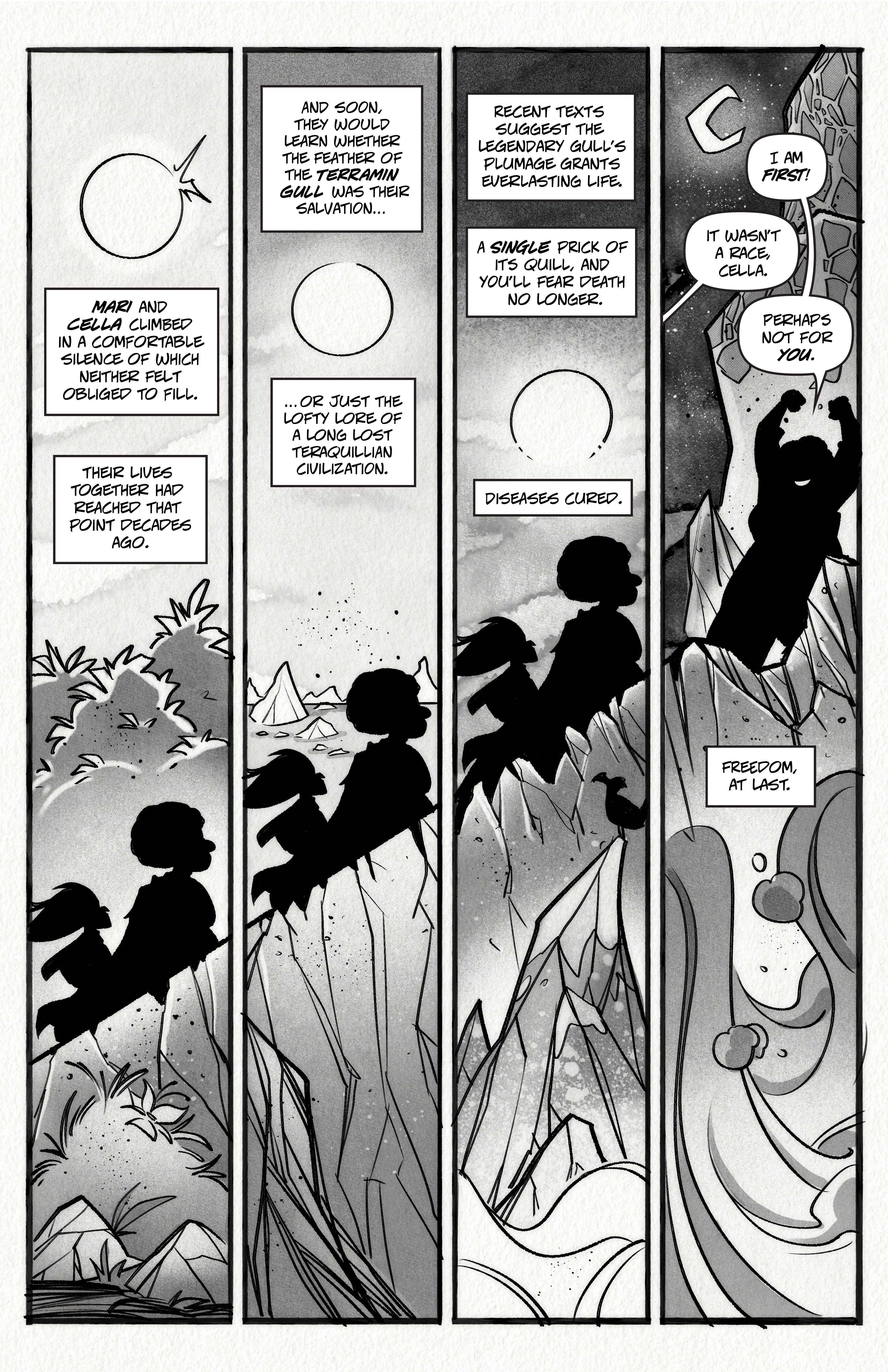If you missed the other books, that’s cool! They’re not required reading as these are all self-contained stories, but they’ll be available in this campaign in both print and PDF versions. Here’s a little preview of the first story in the book, Feather of the Terramin Gull.