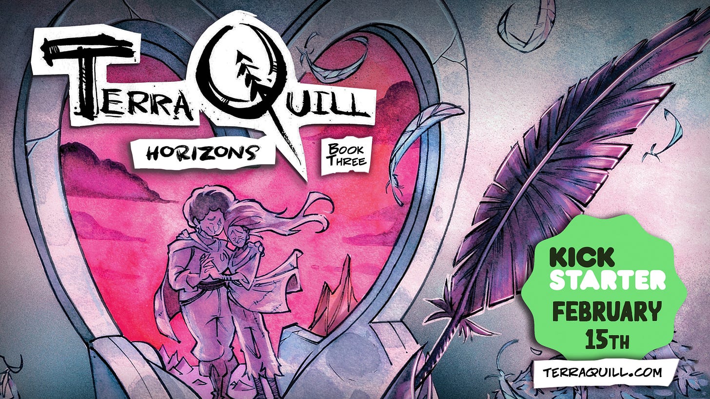 TerraQuill Horizons Book Three launches this Sunday February 15th! I’ll be at FAN EXPO Vancouver and I’m planning on launching it live during a panel about Kickstarting comics in an effort to demonstrate how achievable Kickstarting can be for up-and-coming creators. Get notified for launch right here, it helps a ton!